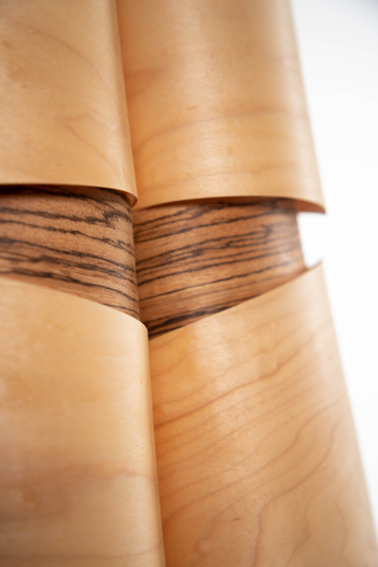 Caim lamps are handmade and are made exclusively of natural materials (wood and ceramics). The blinds are made of veneer, which are found in various combinations and shapes on all models of Caim lamps. Wooden blinds thus have the role of converting the cold LED light into a very natural and soothing light. This creates an extremely relaxing and warm atmosphere and a feeling of serenity.
